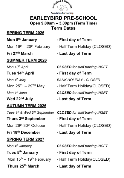 We accept all children onto our waiting list. Priority of places will be given to Hawkedon Primary School designated area – visit www.wokingham.gov.uk to find out your designated school area. Download our waiting list registration form here: